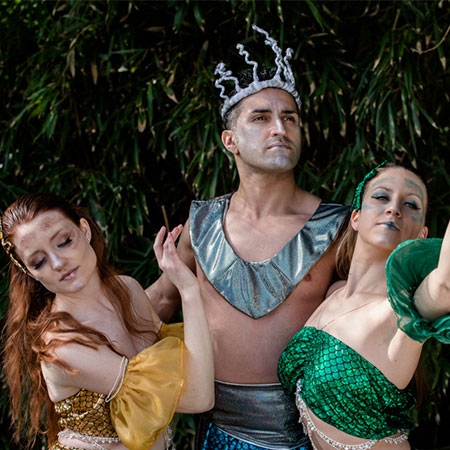 De uno a cinco artistas itinerantes temáticos pueden realizar este acto de sirena itinerante. Disponibles para actuaciones en el Reino Unido y en el extranjero, nuestras mágicas sirenas y tritones llevarán la magia y el misticismo del océano a tu evento.