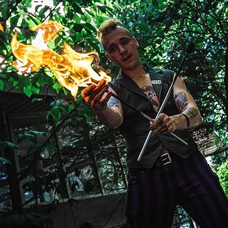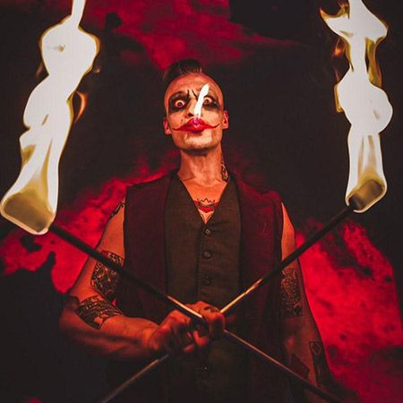 Aportando emoción y drama a cada evento, él es un maestro en la manipulación del fuego y realiza una variedad de impresionantes trucos de comer y respirar fuego.
