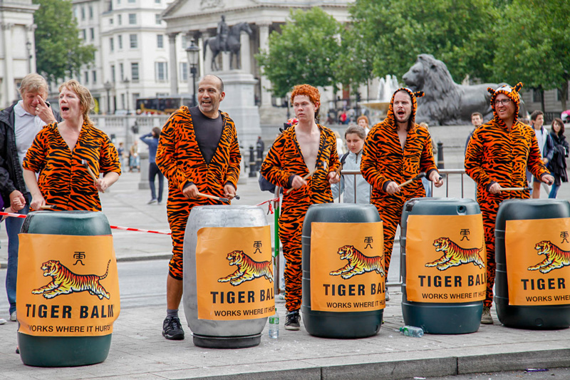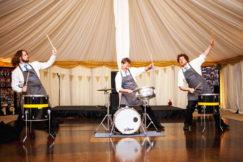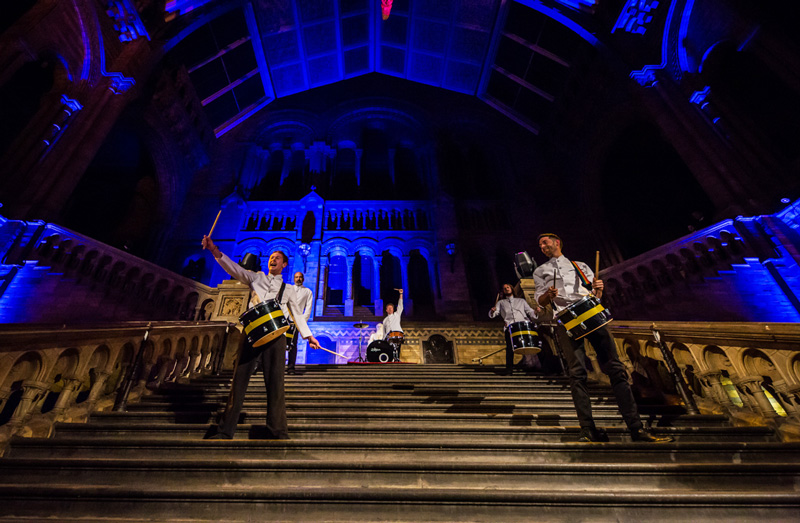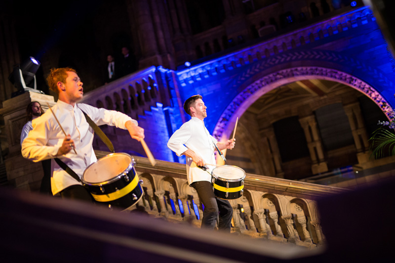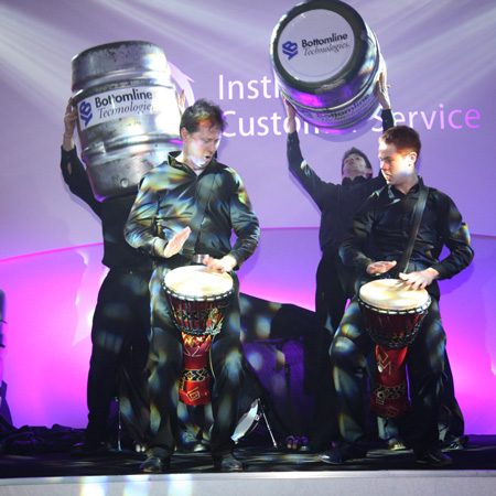 Disponible en una formación desde tan solo dos intérpretes hasta veinte o incluso más, este acto de camareros sorpresa siempre crea un ambiente estimulante en cualquier ocasión. También ofrecen entretenimiento de marca único, los percusionistas y los tambores pueden personalizarse con el logotipo de su empresa para promocionar su marca y llamar la atención sobre su mensaje de marca.