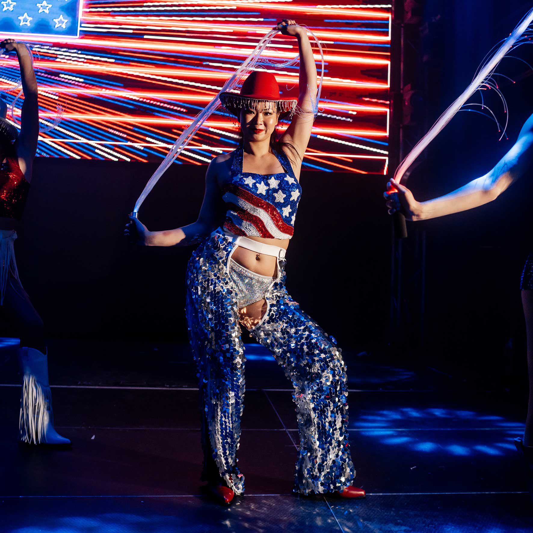 Entretenimiento con Tecnología Avanzada, Artistas de Láser, Entretenimiento temático, Estados Unidos y 4 de Julio, Wild West, Bailarines, Bailarines Temáticos, Bailarines del Mundo, Espectáculos Culturales y Mundiales, Americano, Espectáculos de Cabaret y Escenario, Espectáculos de Láser, LED y UV Glow