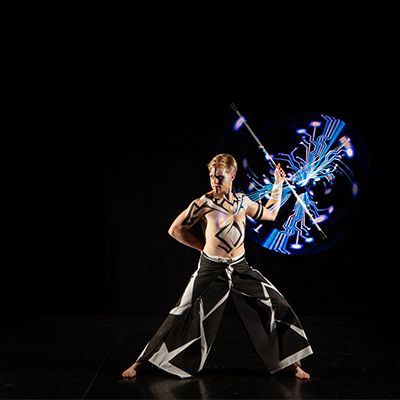 Este espectáculo altamente visual cuenta con danza, acrobacias e increíble manipulación de luces que pueden incluir patrones, efectos e incluso tu marca.