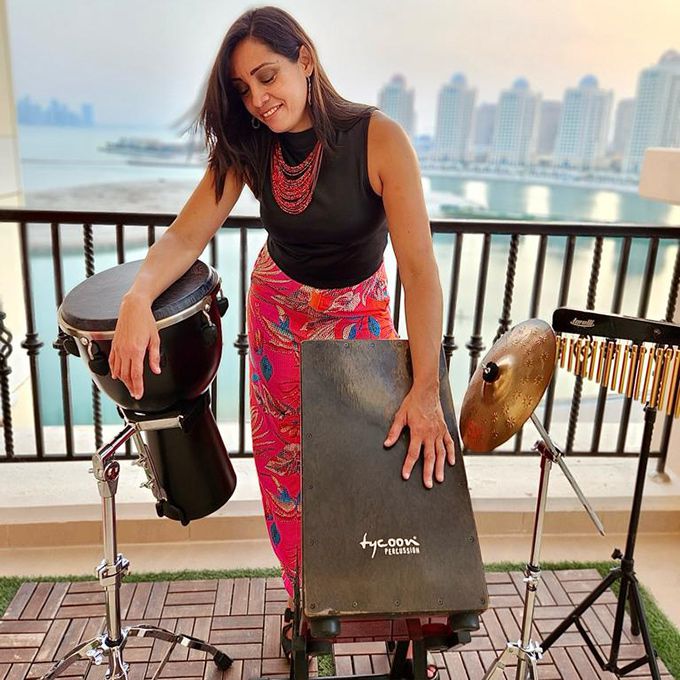 Desde el cajón y el djembé hasta los bongos, pandereta y más, ella puede ofrecer actuaciones dinámicas y llenas de energía en diversos géneros musicales.