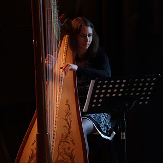 Esta arpista profesional proporciona un hermoso telón musical para cualquier ocasión especial.