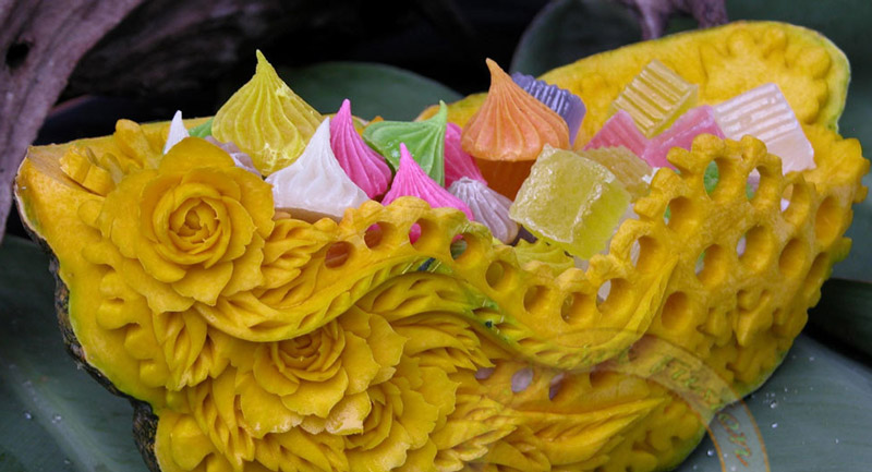 Creativo y emocionante, nuestro talentoso equipo de tallado de frutas puede producir esculturas tanto en estilo occidental como tradicional para hacer sonreír a los invitados, sin importar el tema de su evento.