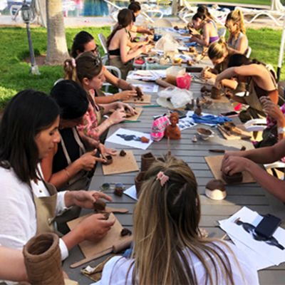 Ofrecen una selección de actividades y creaciones con cerámica como azulejos, alfarería, modelado, diseño y esmaltado, adaptables a tu evento