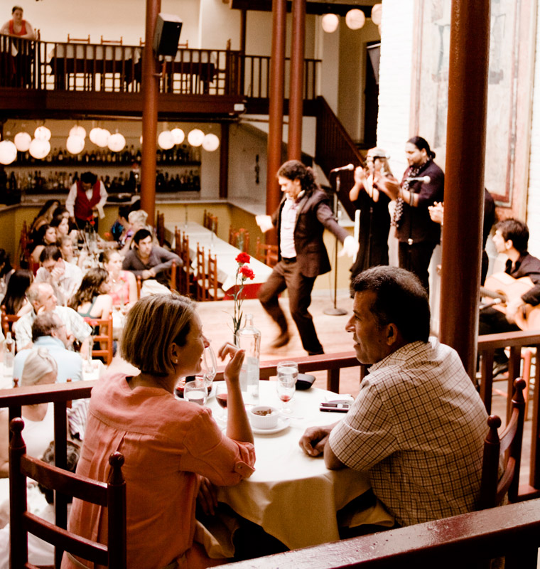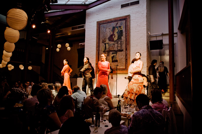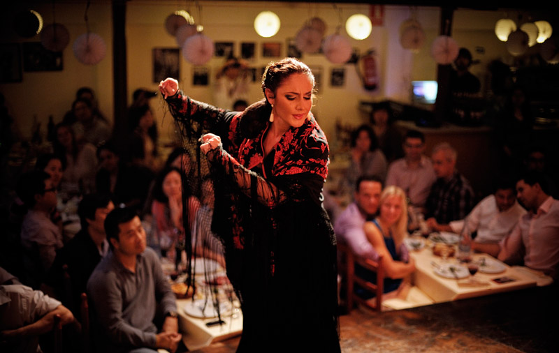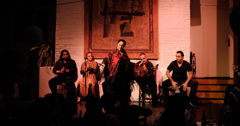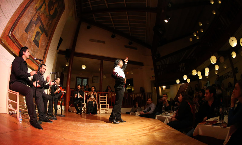 Durante el taller de flamenco, los participantes practicarán técnicas como el Zapateado (zapateo), posturas de brazos y palmas, ritmo e improvisación. Todas las clases son impartidas por uno de los bailarines profesionales de El tablao de Carmen, con grupos de más de veinticinco personas enseñados por un bailarín, acompañado por un guitarrista y un cantante en vivo. Para grupos grandes de más de 150 personas, podemos ofrecer un espectáculo de flamenco excepcional que dura 60 minutos e incorpora una selección gastronómica de auténtica comida en espacios privados. Estos espacios han sido especialmente decorados para dar la sensación de un auténtico club de flamenco, con una atmósfera verdaderamente única, que representa la intensidad y el drama del baile. Además, podemos ofrecer el uso exclusivo del espacio para un evento de dos horas.