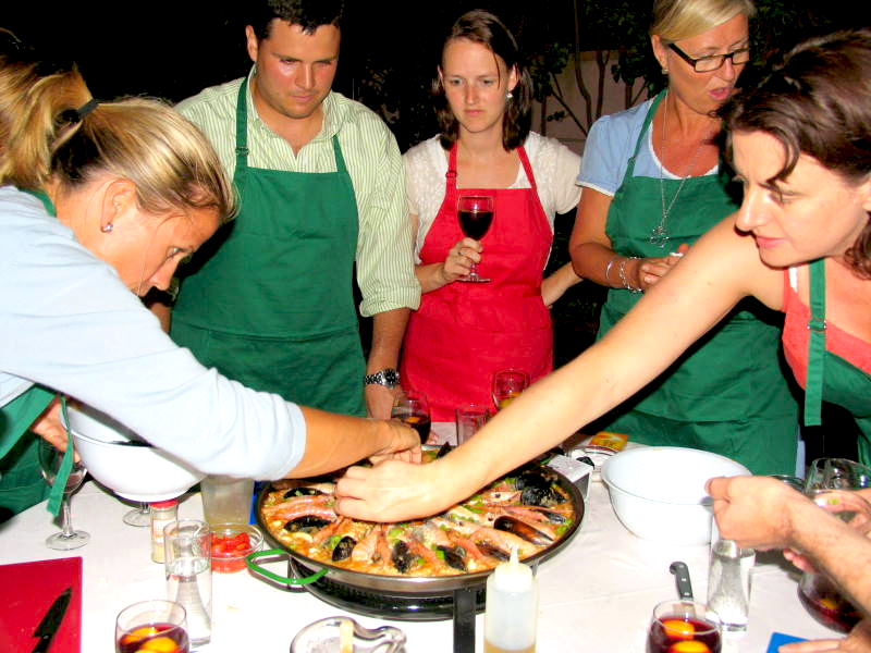 - Barra libre durante la preparación de la paella (los participantes pueden pedir cerveza, vino, sangría o refrescos)