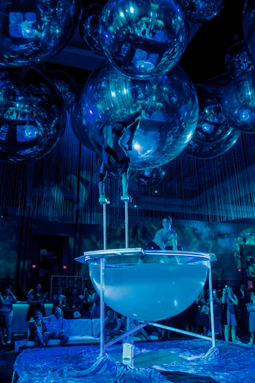 Garantizado para emocionar a los invitados y audiencias de todas las edades, nuestros gimnastas de cuenco de agua, sirenas y equilibristas de manos son un deleite para todos los eventos, ya que interactúan con la multitud y realizan rutinas impresionantes desde dentro de su cuenco de agua.