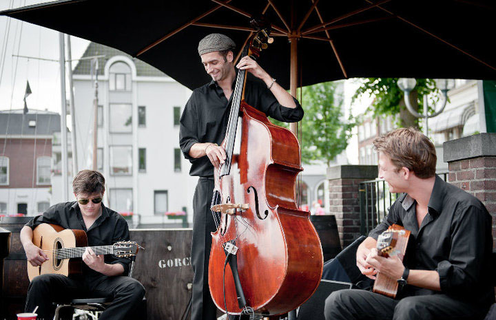 Presentamos nuestro brillante trío de jazz gitano de Holanda, con Thomas y Max en la guitarra y Machiel en el contrabajo. Tocando tanto composiciones originales como conocidos estándares de gypsy swing con toques de bebop, latin, bossa nova, tango y música clásica, ¡este trío ofrece algo para todos!