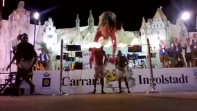 Las acrobacias son típicas de la tradición africana que involucra pirámides humanas, saltos excepcionales con cuerda y juegos con fuego.