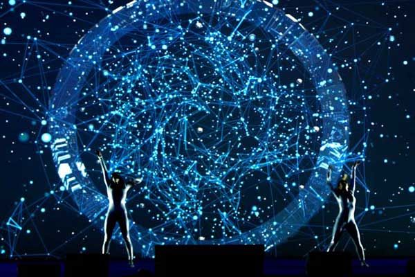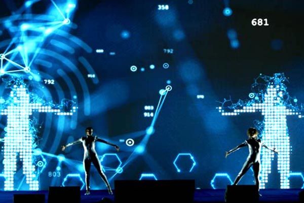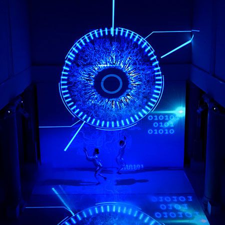Esta impresionante actuación de danza basada en visuales puede incorporar personalización como logotipos de empresa.
