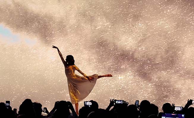 Un increíble espectáculo de alta tecnología que presenta una sorprendente coreografía y gráficos con una temática de sol y estrellas