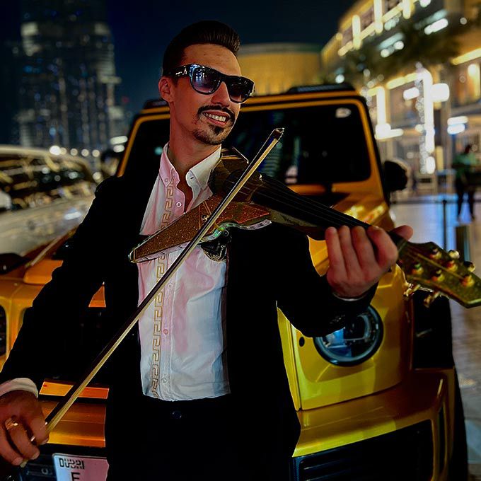 Nuestro DJ y violinista está basado en Dubai y está disponible para actuar en eventos en todo los Emiratos Árabes Unidos, así como en todo el mundo.