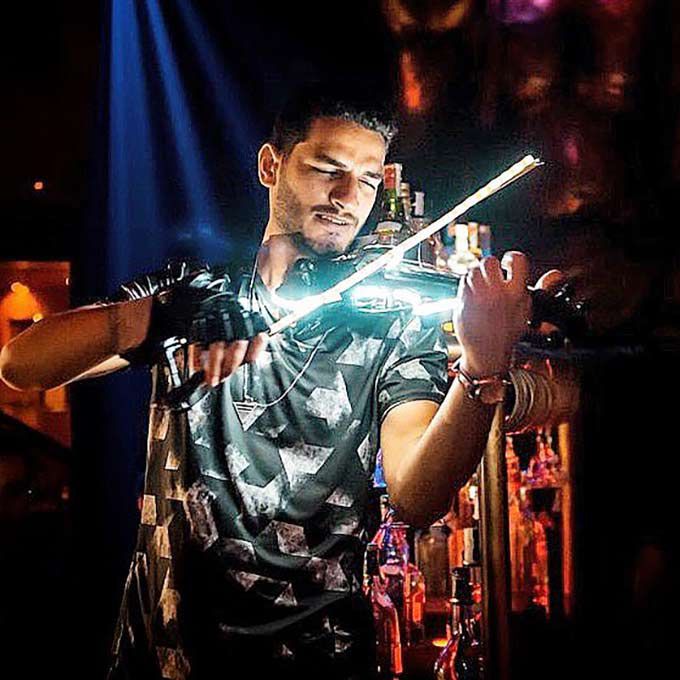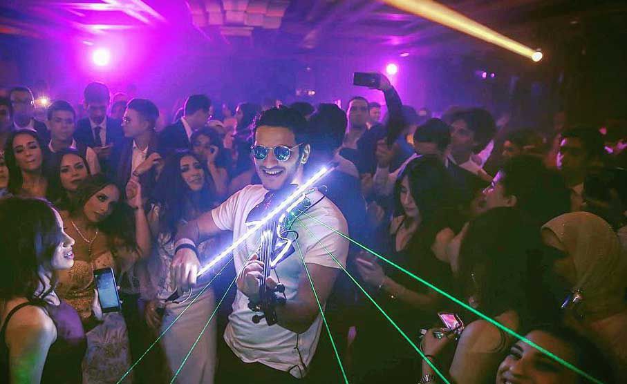 Nuestro violinista eléctrico está basado en Egipto y está disponible para llevar sus actuaciones de violín LED y láser a eventos en Oriente Medio y en todo el mundo.