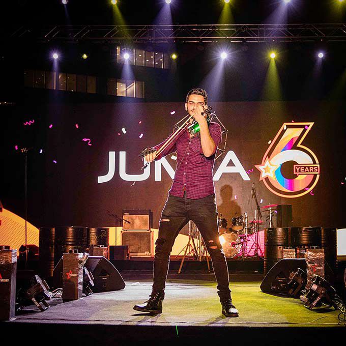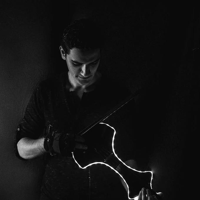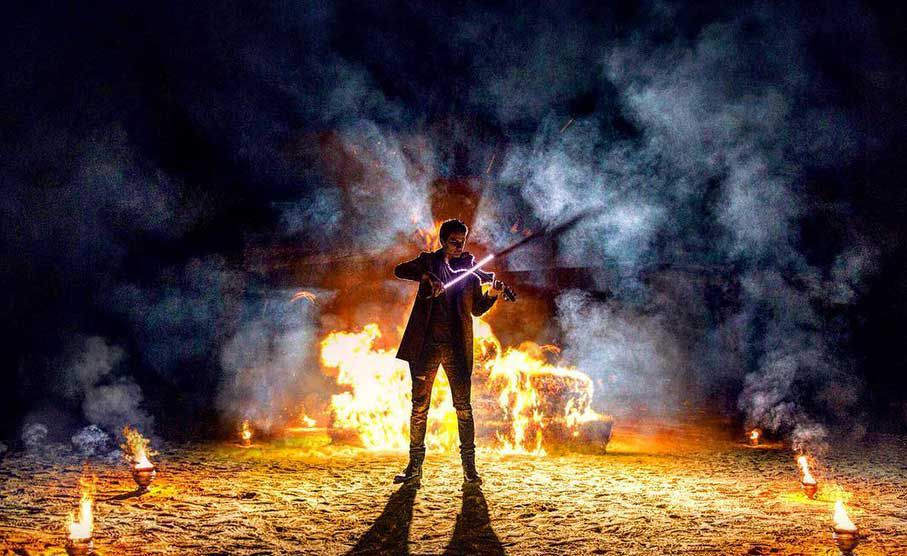 Nuestro violinista incorpora nuevas tecnologías innovadoras como láseres e iluminación LED en sus espectáculos llevando su acto musical a otro nivel.