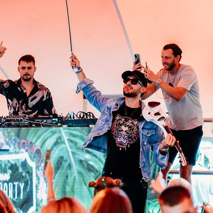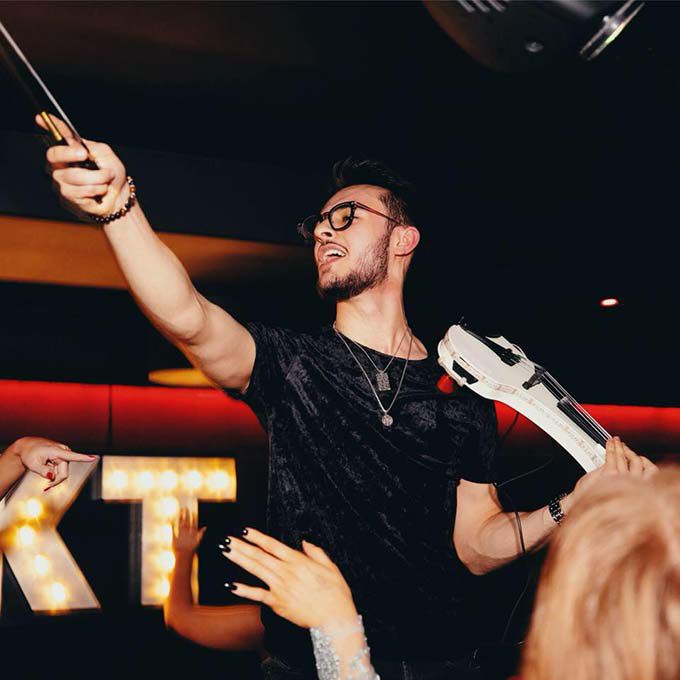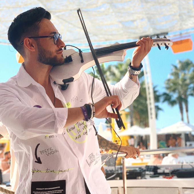 Nuestro violinista eléctrico ha tocado junto a algunos de los mejores DJ y en eventos exclusivos en todo el Reino Unido, así como en Ibiza, Mónaco y Abu Dabi.