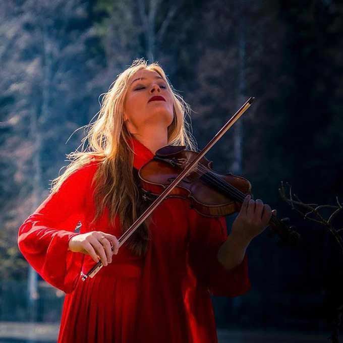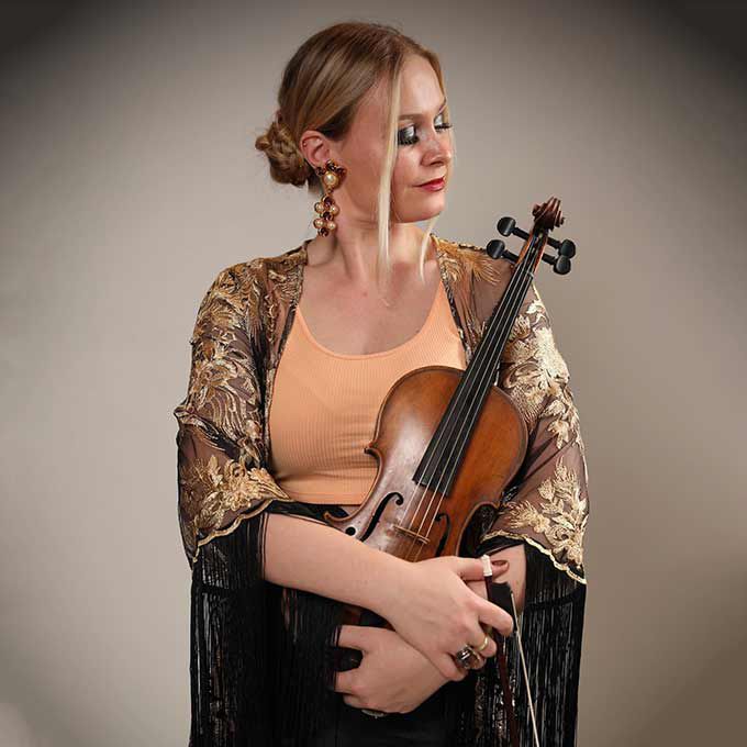 Nuestra violinista toca tanto el violín acústico como un violín eléctrico con luces LED que impresionará a tus invitados