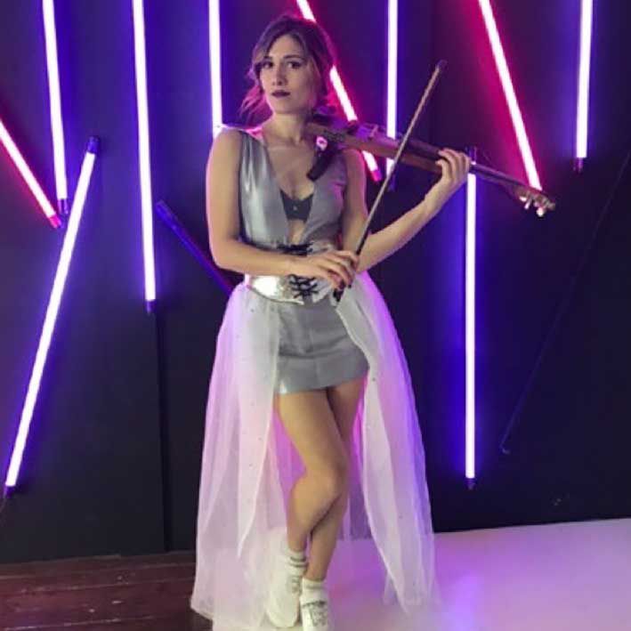 Una violinista eléctrica femenina, dinámica y entretenida, que puede tocar una mezcla de pistas animadas y éxitos más ambientales.