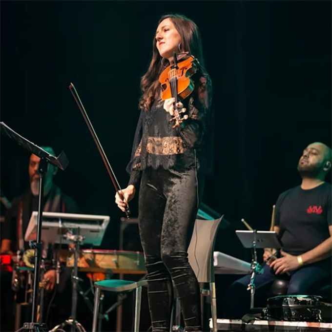 Una artista versátil y cautivadora, experta en violín acústico y eléctrico, que destaca creando experiencias interactivas e inolvidables