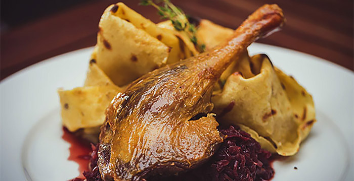 El pueblo de Slovensky Grob tiene una reputación que trasciende las fronteras eslovacas por su tradición centenaria de preparar carne de ganso asada, que se sirve típicamente con panqueques de patata y col roja. Combine estas delicias culinarias con degustaciones de vinos locales cuidadosamente seleccionados en una bodega regional. Su guía turístico local lo llevará en busca de comida y vino auténticos, mientras disfruta de las pintorescas vistas del campo rural y los viñedos locales.