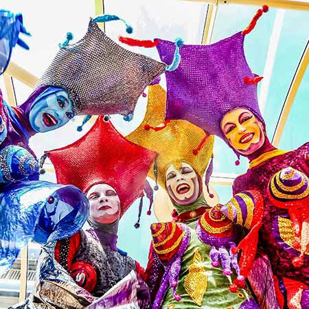 Estos llamativos personajes itinerantes aman bailar e interactuar con el público, creando recuerdos duraderos y posando para oportunidades fotográficas.