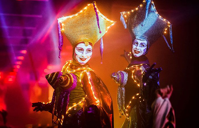 Sus deslumbrantes trajes de LED reflejan la luz ambiente para crear un efecto visual impresionante que añade un elemento divertido a eventos diurnos y nocturnos.