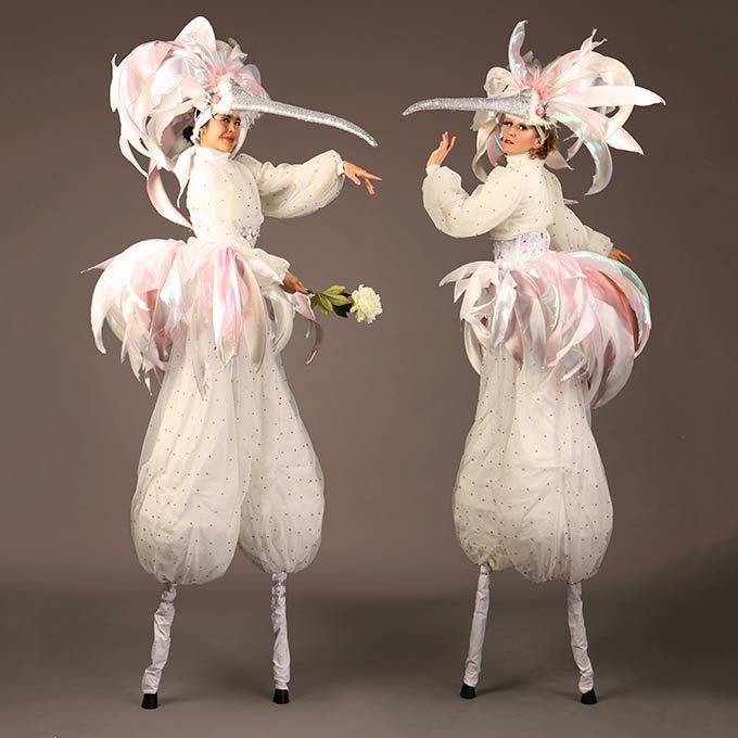 Residente en Londres, nuestro dúo de zancudas está disponible para llevar a estos impresionantes personajes a eventos en todo el mundo