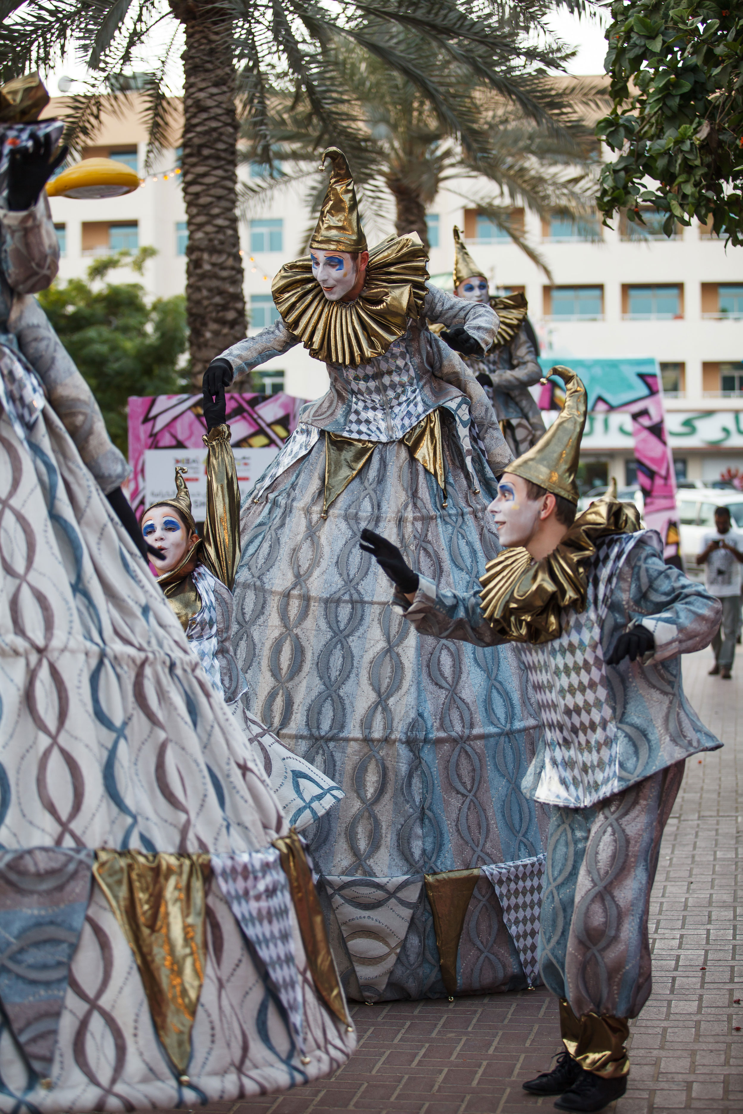 Estos actores experimentados se pasearán por tu evento vestidos con hermosos y elaborados trajes de arlequín en colores azul, dorado y plateado, completos con cuellos de volantes, sombreros puntiagudos y, por supuesto, guirnaldas de diamantes. Con una selección de múltiples zancudos y artistas en el suelo, esta colección de bufones ingeniosos hará reír a los espectadores con sus divertidas travesuras.