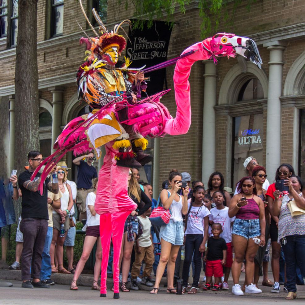 Estos vibrantes zancudos flamencos son personajes interactivos y ofrecen espectáculos itinerantes