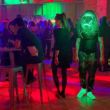 Hemos trabajado con un cliente muy creativo del sector financiero para crear una distopía inmersiva como atrevida alternativa a la clásica fiesta de Navidad. En un mundo futuro en el que terroríficos robots se han infiltrado poco a poco en la vida cotidiana y han tomado el control de la humanidad, una alianza rebelde (los invitados de la fiesta) desafía las órdenes y "conspira" en la clandestinidad.