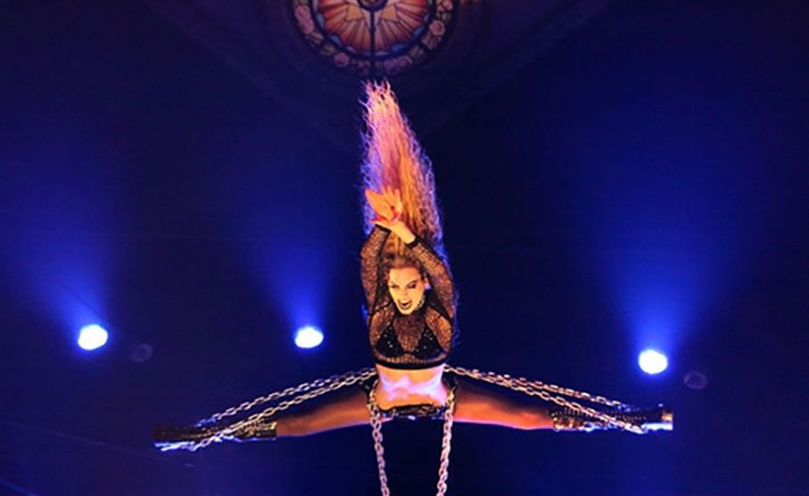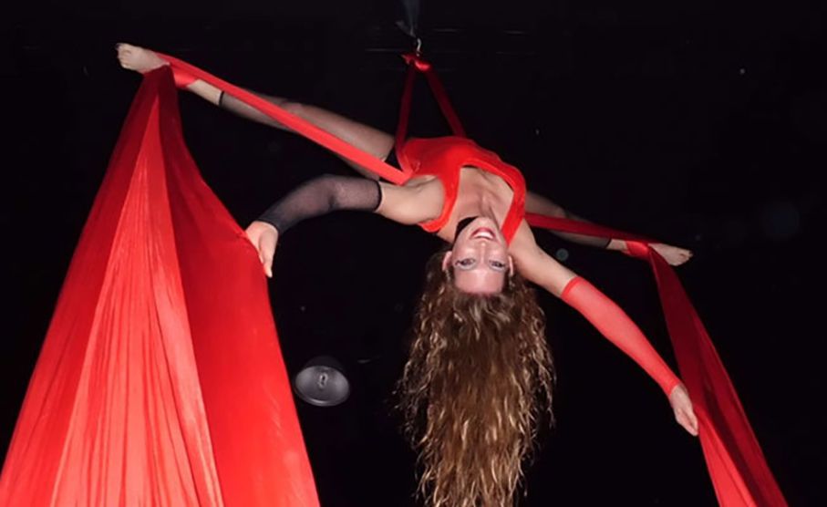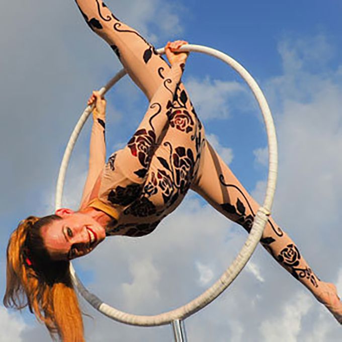 Une artiste de cirque qualifiée, elle peut se produire sur un cerceau aérien ou des tissus aériens, ainsi que proposer des spectacles aériens en chaîne et des performances de trapèze.