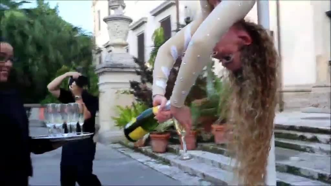 Son spectacle aérien de champagne ravira les invités alors qu'elle offre un verre de bienvenue versé depuis son cerceau aérien, créant des opportunités de photos parfaites.