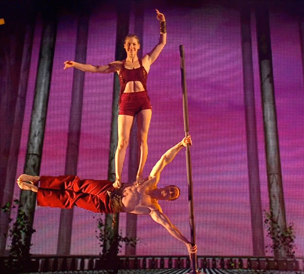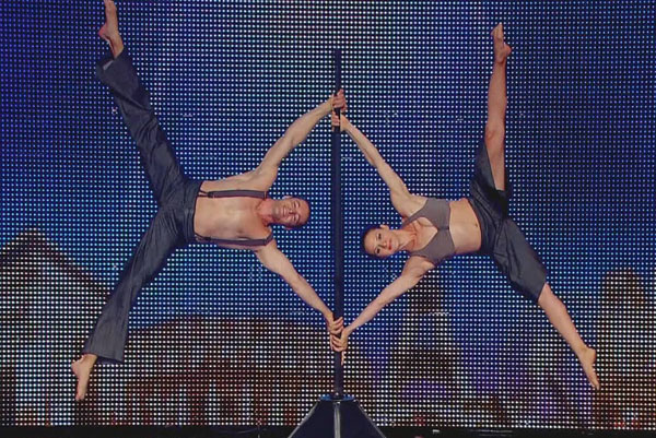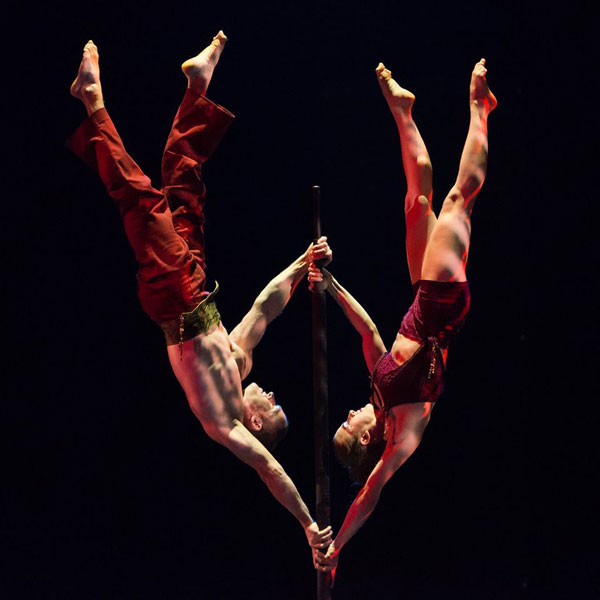 Montrant une impressionnante force centrale, ce duo acrobatique est capable d'effectuer des équilibres incroyables à la fois séparément et en tant que duo d'équilibre en utilisant simplement un poteau pour le soutien. À l'origine créé pour être présenté lors des célébrations officielles du 400e anniversaire du Québec, l'acte acrobatique à couper le souffle de nos artistes de cirque a émerveillé les téléspectateurs de l'émission d'Ellen DeGeneres et le public de "La France a un incroyable talent".