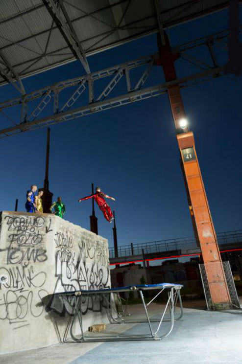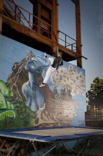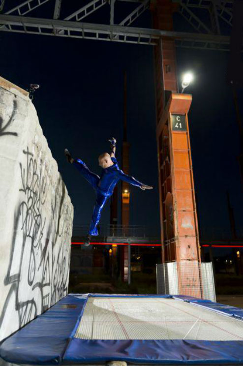 Cet acte unique combine l'acrobatie urbaine de rue et l'art traditionnel du cirque du trampoline pour créer une performance vraiment exaltante qui ne manquera pas d'épater tous les publics.