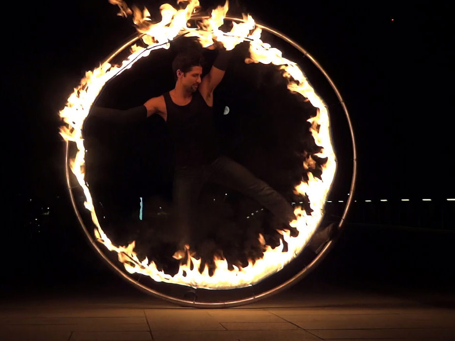 La Roue Cyr en Feu fusionne l'audace et la grâce de la Roue Cyr avec la majesté du feu. Srikanta est l'un des trois seuls artistes au monde capables de réaliser cet acte. Montrez à votre public quelque chose qu'ils n'ont jamais imaginé !