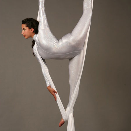 Disponible en tant qu'artiste aérienne solo ou en duo, notre artiste aérienne se spécialise dans des spectacles élégants et sensuels. Réalisant des acrobaties aériennes sur tissu, dans lesquelles elle réalise de magnifiques positions acrobatiques tout en étant suspendue à un long ruban, ou un numéro de cerceau aérien où elle tourne gracieusement dans un cerceau surélevé, notre danseuse aérienne flexible est hypnotisante à regarder.