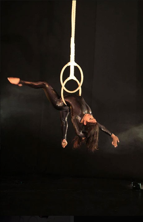 Avec une grande expérience du théâtre, notre artiste aérienne a également fait partie de la distribution de grands spectacles tels que Le Roi Lion et Tarzan et a eu l'occasion de se produire lors d'un concert de Mariah Carey au Brésil.