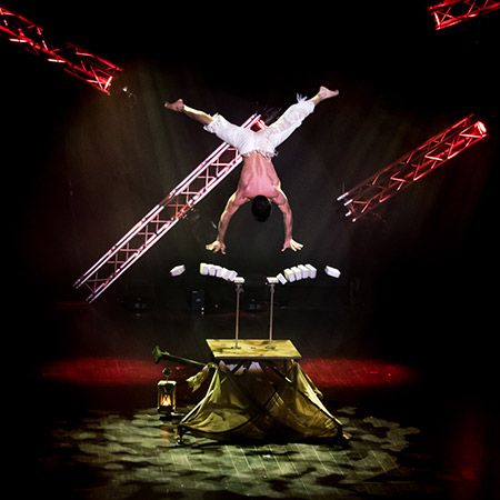Spécialisé dans ses techniques uniques et mystifiantes d'équilibre sur les mains et ses performances à la barre chinoise, notre acrobate incroyablement entraîné fera passer votre prochain événement spécial ou rassemblement social à un tout autre niveau de "wow". Enchantant et divertissant les invités avec son fantastique numéro de cirque, notre artiste talentueux est sûr d'émerveiller et d'inspirer vos invités, quel que soit leur âge. En se produisant avec dévouement, élégance et force, le numéro d'équilibre sur les mains de notre acrobate offrira un divertissement exceptionnel digne d'un cirque, démontrant ses incroyables compétences.