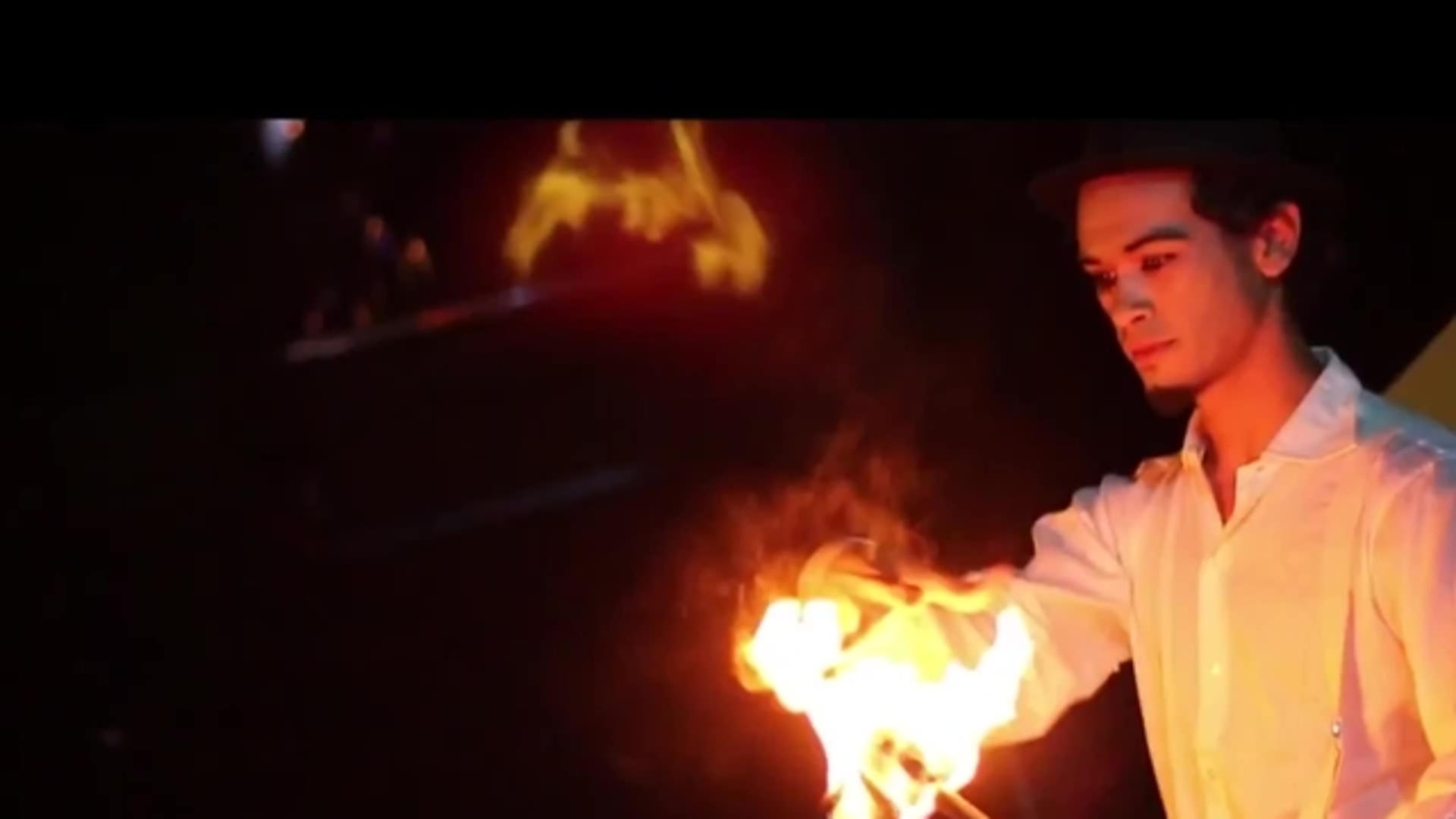 La performance de João combine un art du feu époustouflant, alors qu'il souffle d'énormes boules de feu haut dans les airs, fait tourner d'énormes cubes et flammes enflammés en 3D, créant des formes spectaculaires. Il divertit également avec des cascades acrobatiques impressionnantes telles que les écartements, les saltos arrière et des numéros de cirque tels que la jonglerie et le mime.