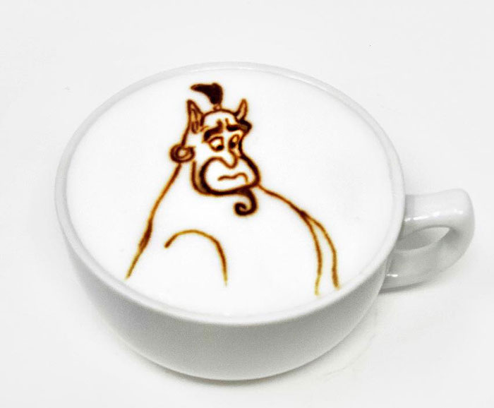 A inventé une spécialité pour la gravure sur café où il peut dessiner presque n'importe quoi, des portraits aux logos.