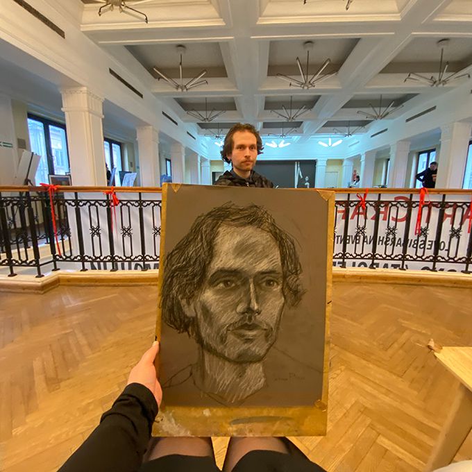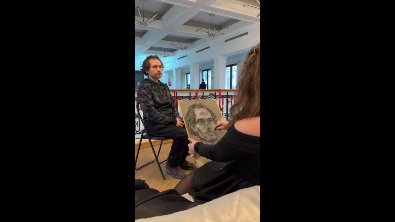 L'artiste prend environ 15 minutes pour un croquis rapide et 20 à 30 minutes pour une peinture de portrait unique et détaillée.