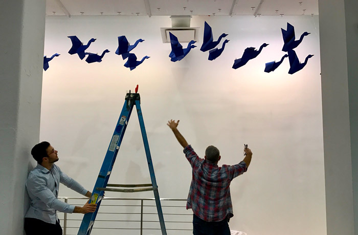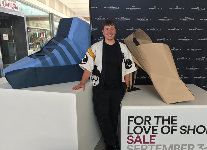 Avec nos artistes de l'origami aux États-Unis. Aucun projet n'est trop grand ou trop petit et aucun papier n'est trop grand ou trop petit pour être plié. Ils ont de l'expérience dans la réalisation de projets tels que 3000 roses pour une campagne de la fête des mères ou encore la création de chaussures de 2 mètres de haut pour les centres commerciaux à travers le pays. Ce sont de véritables maîtres dans la création d'installations d'origami géantes telles que des chaussures à talons hauts de six pieds de haut et d'énormes oiseaux.