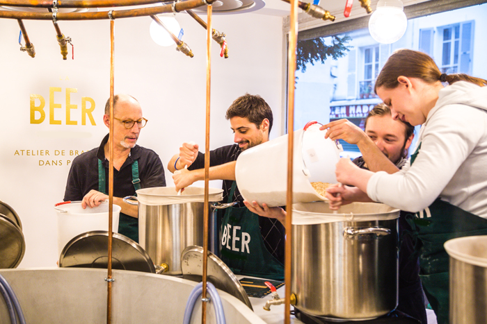 - Participation des invités et explications des différentes étapes du brassage d'une bière blonde avec un brasseur professionnel