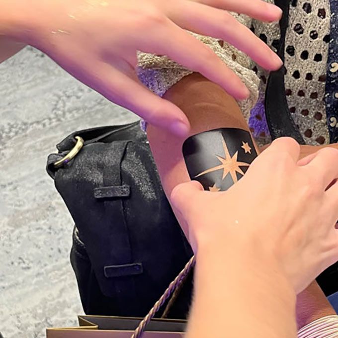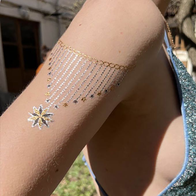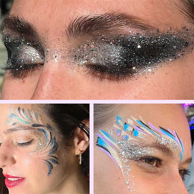 Se vantant de tatouages pailletés respectueux de l'environnement à partir de pochoirs personnalisés et de décalcomanies de tatouage, nos maquilleurs peuvent personnaliser des designs pour votre événement.