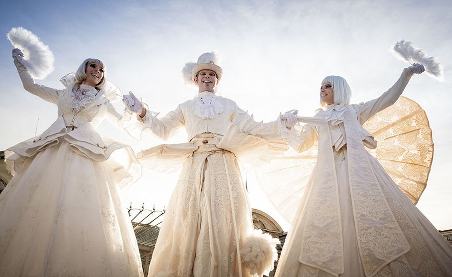 Choisissez parmi le noyau de danseurs et d'échassiers, ou rehaussez l'expérience avec l'option de deux majestueux chevaux avec cavaliers.