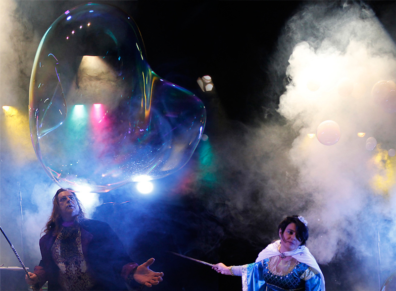 Interprétées par un duo expérimenté, les spectacles racontent l'histoire d'une princesse et d'un magicien qui construisent un merveilleux royaume de bulles.