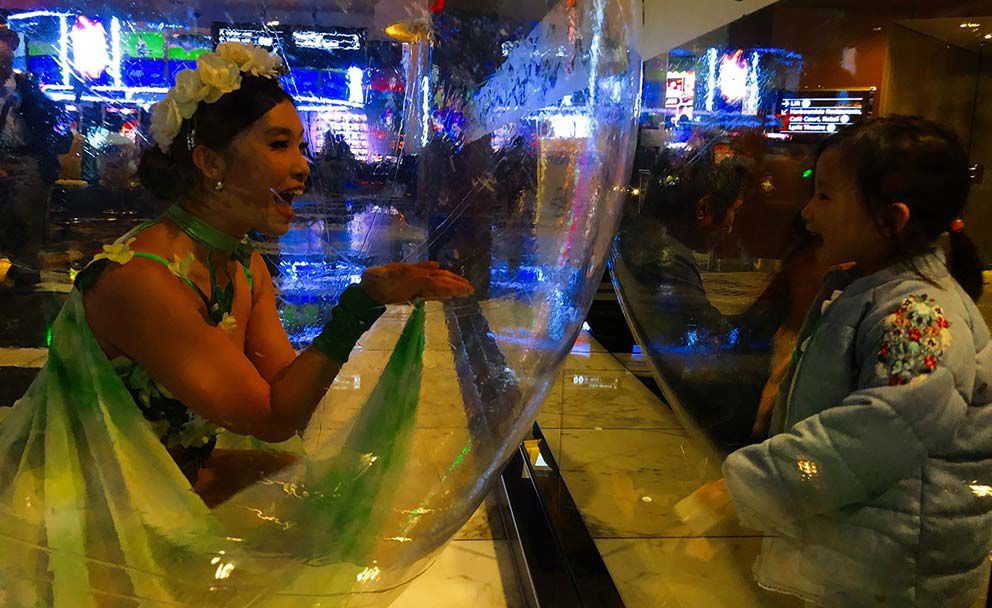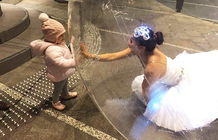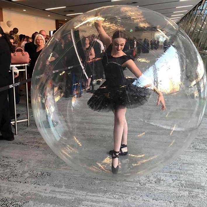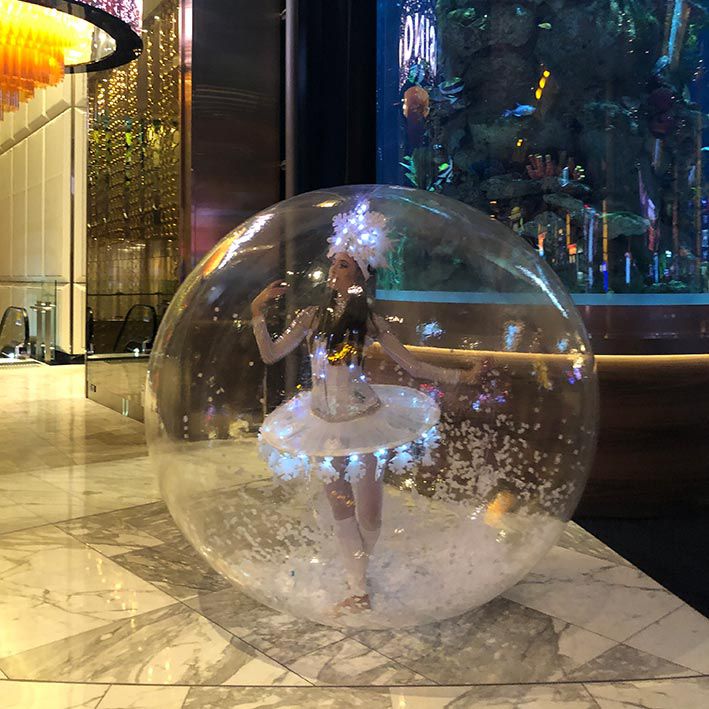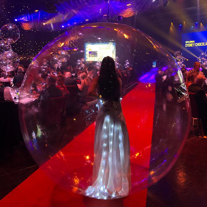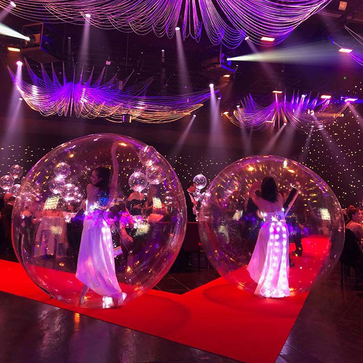 Revêtus de magnifiques costumes et enfermés dans des sphères transparentes magiques, ces artistes apportent un facteur wow imbattable à tout événement.