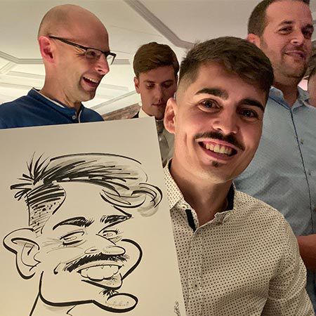 Les designs vibrants et excentriques font de ce caricaturiste l'idéal pour les célébrations familiales et les mariages, ainsi que pour les événements d'entreprise et les salons professionnels.