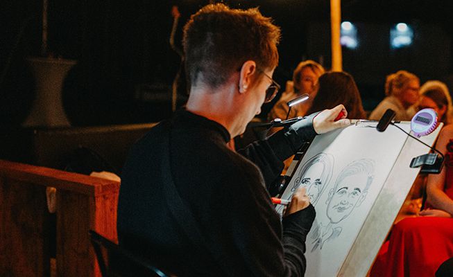 Disponible dans le monde entier et idéal pour les mariages, les événements d'entreprise, les foires commerciales et les célébrations, ce caricaturiste divertit les invités et les fait participer.
