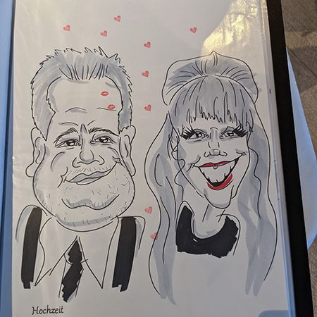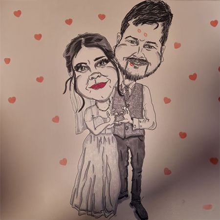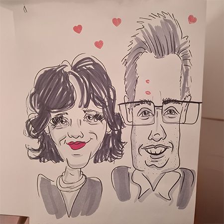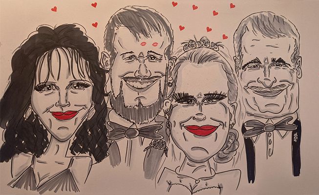 Ce caricaturiste de mariage produit 11 à 14 caricatures personnalisées par heure, offrant aux participants un souvenir unique à ramener chez eux après votre événement.